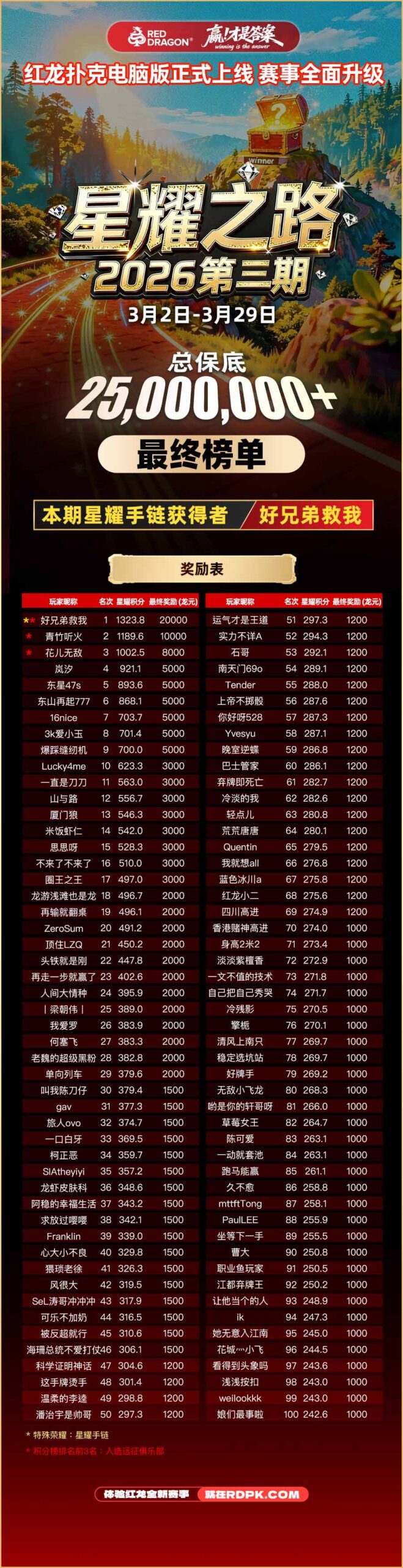 2026年3月2日 – 3月29日第三期通往巅峰的荣耀之路,已完结!